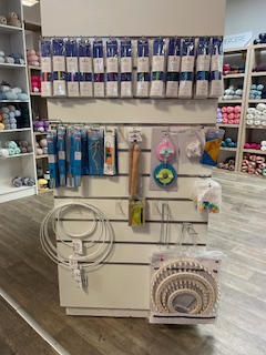 Le rayon laine et toutes les fournitures dont vous pourriez avoir besoin : laine et coton de qualité, aiguilles, crochets et tous les accessoires nécessaires pour toutes vos créations.